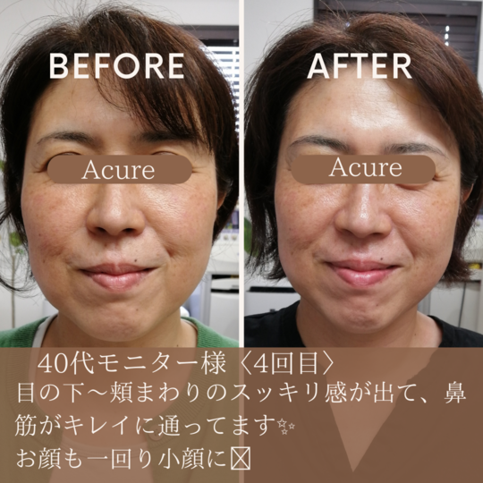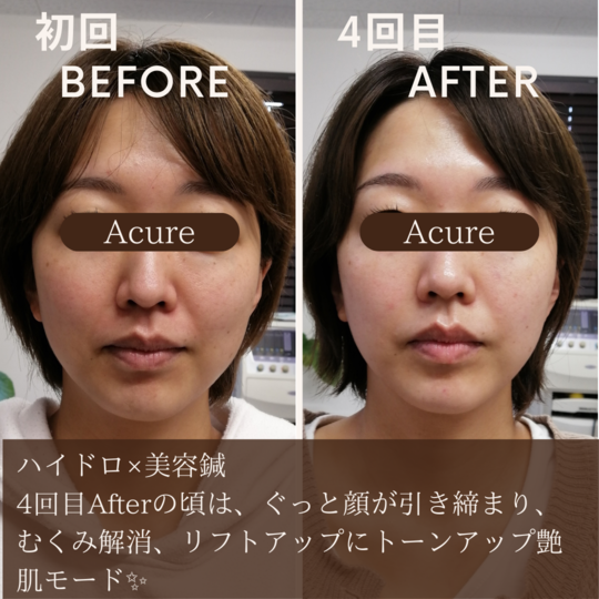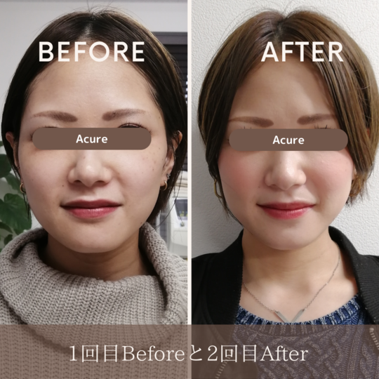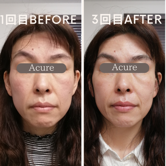 このように、Acureのヒト幹細胞美容鍼(リバースエイジング鍼)施術なら、1回でもしわ・たるみの減少、リフトアップや肌のトーンの改善が実現できます。