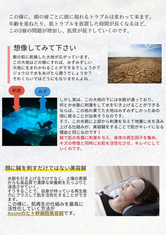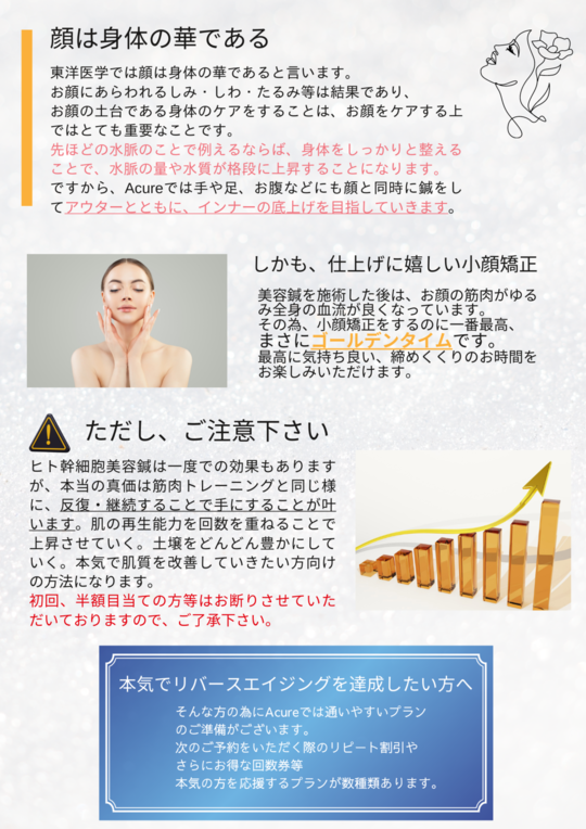 顔に鍼を刺すだけではない、Acureのヒト幹細胞美容鍼だからこそ全ての原因に対し