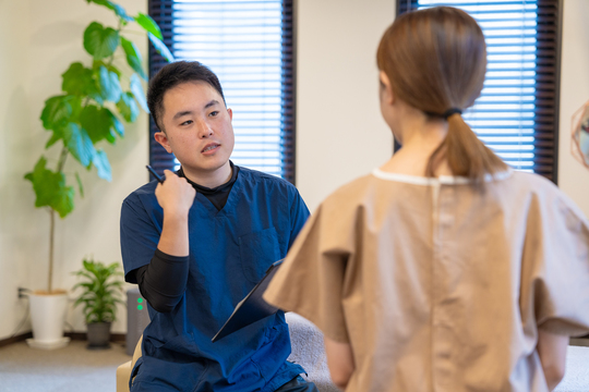 施術後のお身体の状態を確認しながら、今日の施術の流れや日常生活で気をつけること、取り組んでいただきたいこと等をお話します。